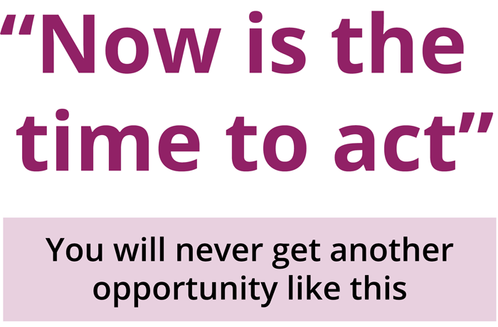 I really don’t want this to be the moment in your life where you look back and think, “if only I’d used this opportunity”.